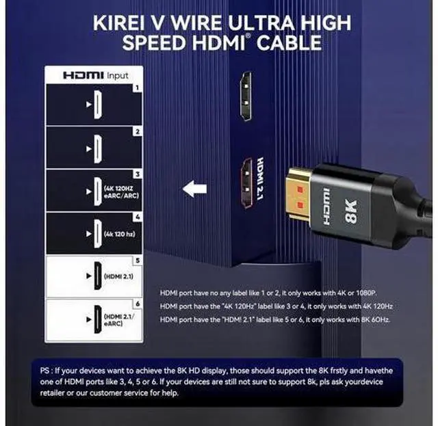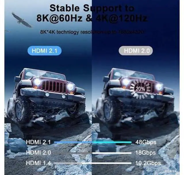 • 8K HDMI 2.1 Cable 48Gbps: Ultra-high-speed cable supports 8K@60Hz, 4K@120Hz/144Hz, and 1080P@240Hz. Backward compatible with HDMI 2.0/1.4