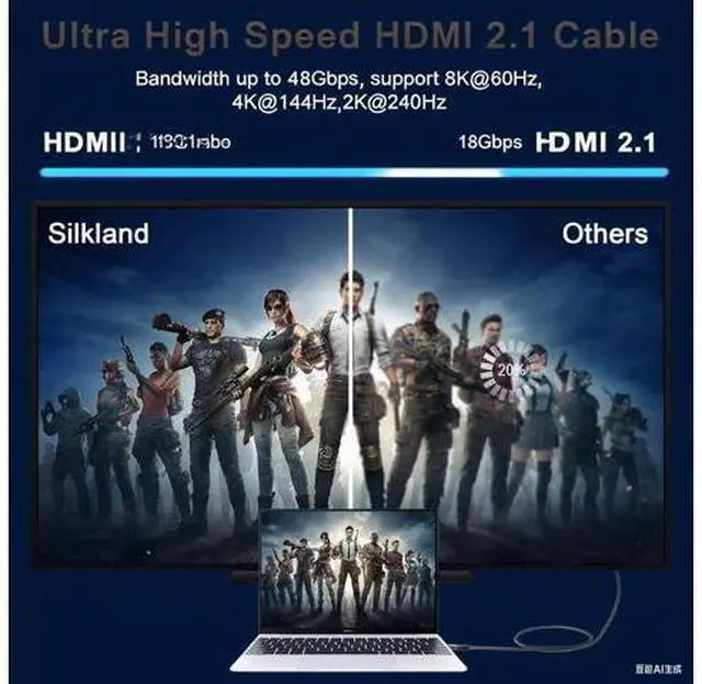 Cable 48Gbps: Ultra-high-speed cable supports 8K@60Hz, 4K@120Hz/144Hz, and 1080P@240Hz. Backward compatible with HDMI 2.0 / 1.4