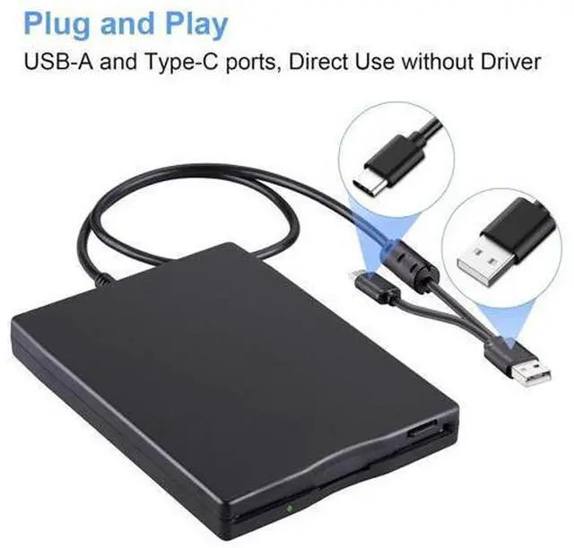 Recovering Long-lost Memories: Most current laptops and desktop computers no longer come with an internal floppy drive for reading floppy discs, and this 3.5 -inch USB-A & Type-C external floppy disk drive can help you bring back old memories from your old floppy discs. Save and transfer all those old photos, videos and documents that haven't seen the light of day for ages. It is a lifesaver to recover old data and files on floppy discs. ^^ USB Floppy