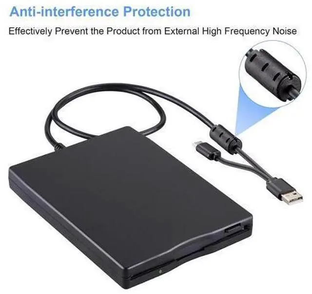 ^^ Plug and Play: No additional driver is required, just insert a floppy disk into the floppy drive and plug the USB-A/Type-C connector into your computer, it will be detected automatically. The floppy disk reader is non-slip and shock-proof, low noise, and anti-interference, with one-touch floppy disk ejection function, easy to use.