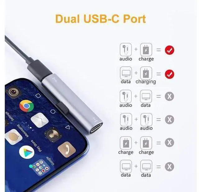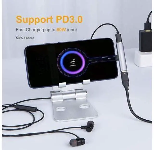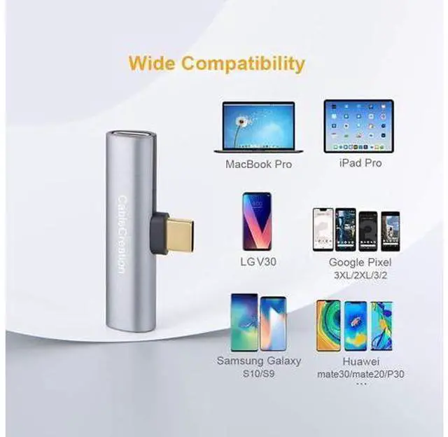 ?? Dual FunctionCableCreation USB-C audio and charging adapter allows you to connect a Type-C headset and PD adapter simultaneously. Don't worry about the phone will be out of power when playing games, enjoying fantastic music or having a long telephone conversation?? High Performance Built-in DAC chip for stable and secure signal transmission, maintain optimal audio quality. Support PD fast charging with power up to 60W (20V/3A), doesnt support QC. Please press the volume up/down controller button on the headset can Answer/Reject phone call, Play/Pause/Choose music.?? Broad Compatiblity This usb c adapter is widely compatible Type-C/Thunderbolt 3 device like MacBook Air, MacBook Pro 2020, Galaxy Note 10/ S8/ S9/ S10 / S20 / S20+ / S21, Pixel 2/2XL/3/3XL/4, Mate 20 Pro/P20/P30 Pro/P40 and more.