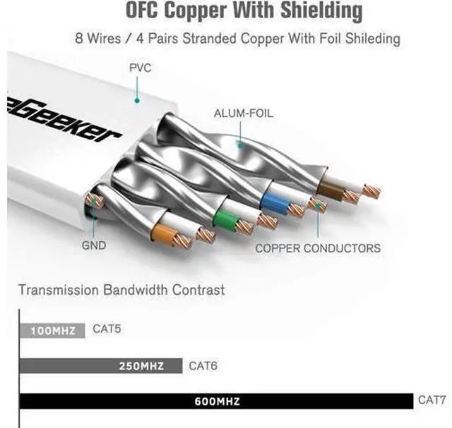 High Speed: Supports 600MHz high-speed data transfer for server applications, cloud storage, video chatting, high definition video streaming, and gaming. Cat7 cables are the best generation. High CompatibilityThe Class F channel and Cat7 cable are compatible with cat5, cat5e, and cat6. Class F has less cross-talk and system noise past than Class E thanks to intelligent shielding.