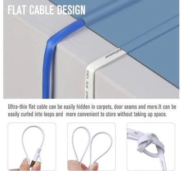 High Neatness: A Flat cable design helps improve the look of your home or office. Flat cables are super flexible and can be run under the carpet or bent through corners or into desks.