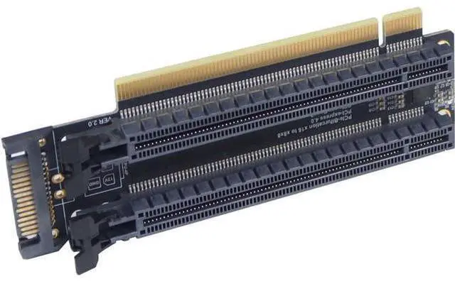 Conditions of use: Motherboard BlO*S supports changing PCIE operating mode to X8X8. Gold finger sinking process, increase gold thickness to 5U. Adopt new generation GEN*4 connector with dust plug and snap. 2cm slot spacing. Supports PCIE extension cable adapter. With clock splitting IC. With power on LED indicator. With CPU4P auxiliary power supply port.