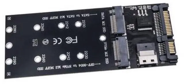 Package Includes: 1 x SATA M. 2 SSD to SATA, NVMe M. 2 NGFF SSD to SFF-8654 Adapter
