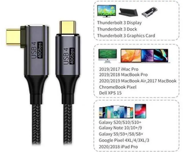 4) Wide Compatibility: This USB4 Type-C Cable is widely compatible with Most of USB-C Devices (Mainly Laptops), Such as Mac Pro 2020, 2019, 2018, XPS, Chrome Book and other DP Alternated Mode Supported Devices, backward compatible with Thunderbolt3, You can also connect with Hard Drivers and Docking Stations for Data.