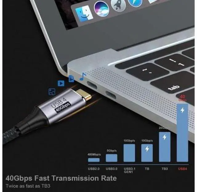 Data Transfer Rate: This USB4 Cable can Reach Data Transfer Rate up to 40Gbps, the transmissions speed is twice as fast as Thunderbolt3. 3) Practical 100W