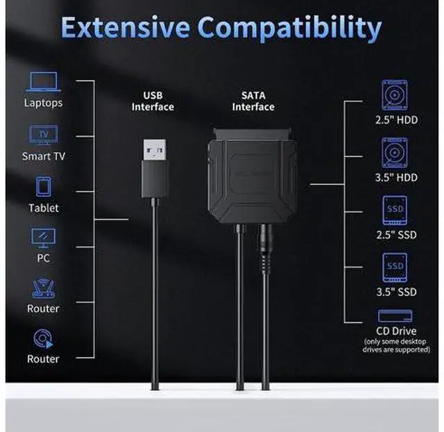 [5Gbps SuperSpeed USB 3.0 ] Usb sata adapter Uses USAP as the latest transmission technology, supports data transfer up to 5Gbps, and is backward compatible with USB 2.0 to ensure maximum performance and data transfer. [Suitable for all devices] Supports all 2.5" / 3.5" SATA HDD/SSD, BLU-RAY, DVD, CD-ROM, DVD-ROM, CD-RW, DVD-RW and