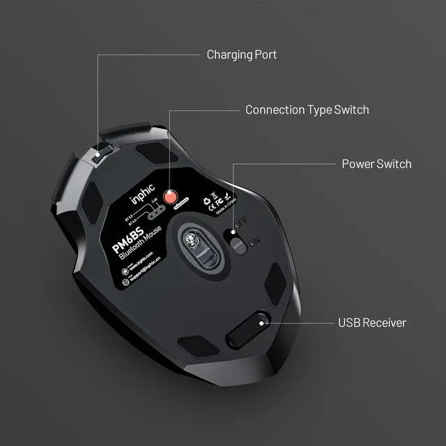 Introducing the INPHIC Bluetooth Mouse, a cutting-edge rechargeable wireless mouse designed for multi-device use. This innovative mouse offers Tri-Mode connectivity, supporting BT 5.0 / 4.0 + 2.4G hz, ensuring seamless compatibility with various devices.