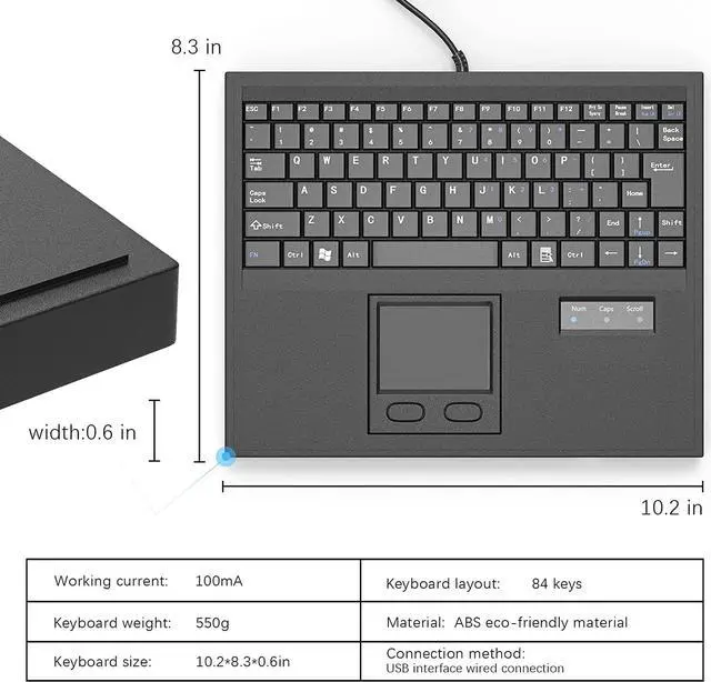 Integrated Touchpad Mouse: Supports essential gestures such as scrolling, tap to click, and dedicated left and right click buttons.