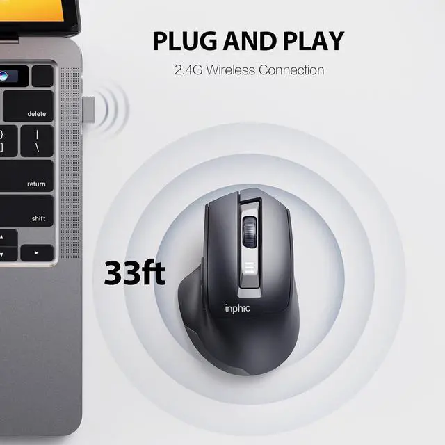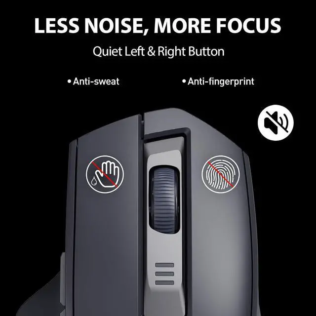 The wireless mouse features whisper-quiet left/right buttons that eliminate distracting clicks. Perfect for libraries, offices, or late-night work--stay focused without disturbing others. Work in peace, anytime, anywhere.