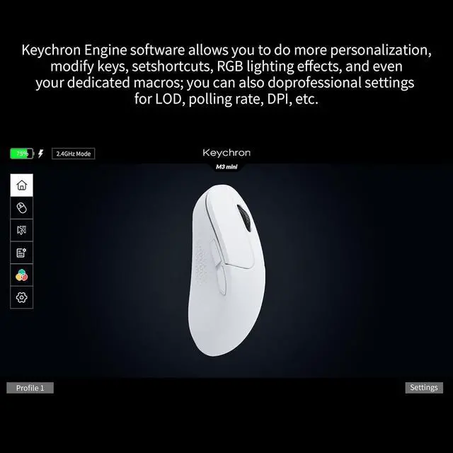 More Customization - Keychron Engine support Windows 11/10 and macOS, the M3 mini allows you to do more personalization, modify keys, set shortcuts, macros, RGB lighting effects, and supports onboard memory; you can also do professional settings for LOD, polling rate, DPI, etc.