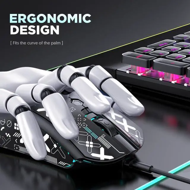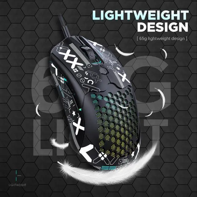 The mouse has 26 built-in RGB modes, you can adjust it to your favorite lighting effect through the RGB button at the bottom. This gaming mouse has 6 levels of adjustable