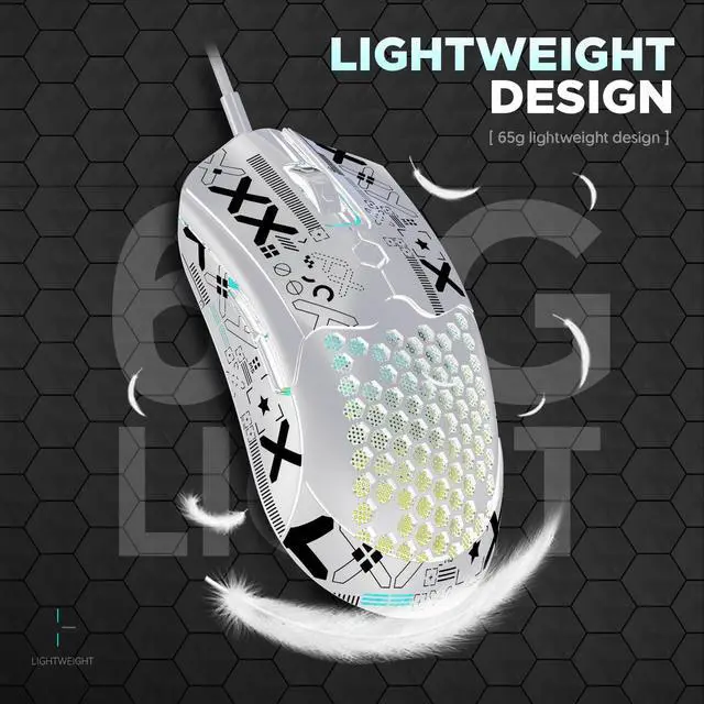 The mouse has 26 built-in RGB modes, you can adjust it to your favorite lighting effect through the RGB button at the bottom. This gaming mouse has 6 levels of adjustable