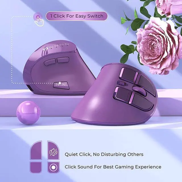 *Ergonomic wireless vertical mouse: the shape of the vertical mouse prevents the wrist from twisting and relaxes muscles and joints. It is wide enough on the foot to comfortably support the hand, ideal as a preventative measure against carpal tunnel syndrome