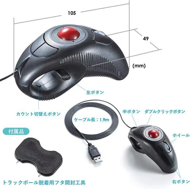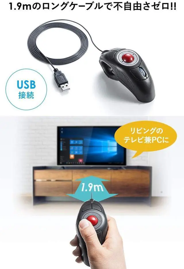 With a 6.2 ft (1.9 m) long cable, it is convenient for you to operate it by changing your posture and manipulating it from a distance when presenting meetings or watching videos. This trackball mouse has a button placement that makes it easy to operate on either the left or right. You can also use it when one hand is tired