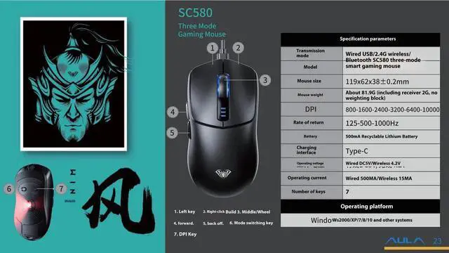 (2) Model: SC580 three-mode dynamic level gaming mouse