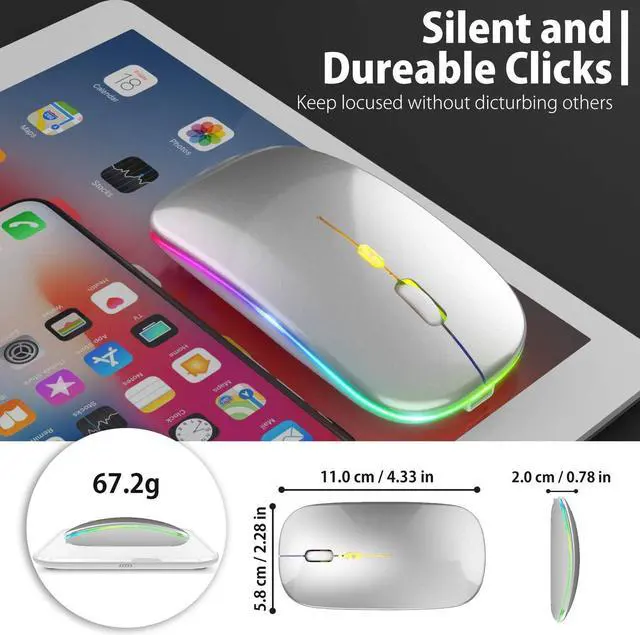 7 Colorful LED breathing light change alternately, soothing light lights up the mouse in dark, adds more fun to the life.