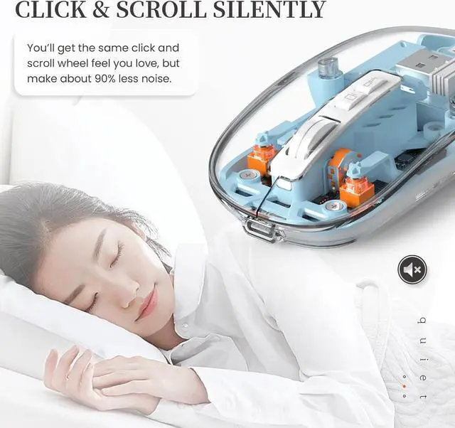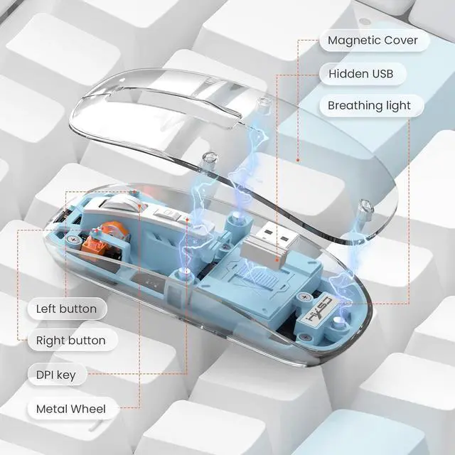 Rechargeable & Battery Level DisplayThe mouse features a transparent clear cool shell that not only looks stylish but also helps you keep track of the battery level. Our mouse has a built-in high-performance rechargeable battery that lasts up to 30 days when fully charged, with a long standby time of just 40 minutes for a full charge; visual display of remaining battery power for easy viewing of real-time power status; automatic hibernation mode effectively reduces unnecessary power consumption and wakes up again with the click of any button.
