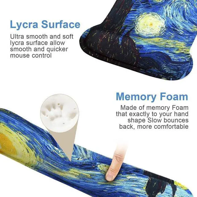 ERGONOMIC DESIGN: The ergonomic mouse pad set is perfectly curved for your wrist and hand, help to maintain the right posture when using the computer. The high-tech soft memory foam cushion padding will constantly support your wrist, relieve the pain and stiffness to your hand, wrist, elbow, shoulder, reduce muscle strain, protect your wrist from overuse pain syndromes such as Carpal Tunnel and RSI effectively.