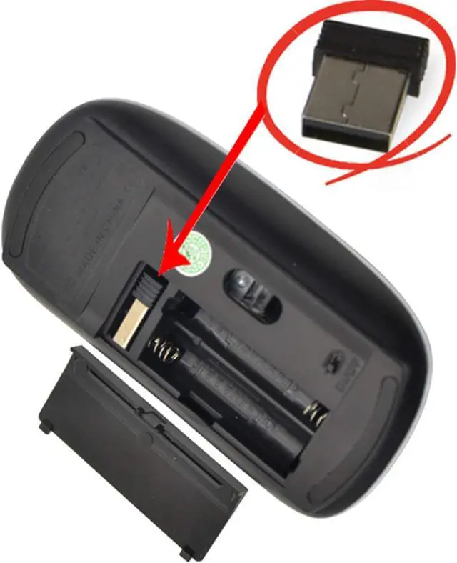 Wireless curved mouse connects via NANO USB receiver.