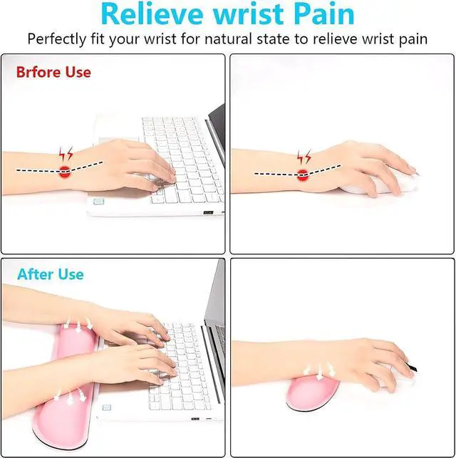 Ergonomic Wrist Rest The keyboard wrist pad comes ergonomically built on wrists curve to maintain proper wrist positioning and remain flush against keyboards or mice. it helps reduce pressure on the wrist and friction between hand and desk.