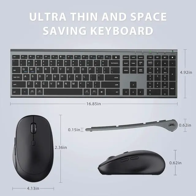 ULTRA-THIN FULL-SIZE KEYBOARD: The ultra-thin full-size keyboard has an independent number zone and multimedia functions. It is the most suitable keyboard for office work. The X-structure design of the keys is labor-saving, light-sounding, stable, and can accurately supplement every stroke. The bottom of the keyboard is designed with aluminum alloy, and at the same time, it adopts a special process to make the appearance thinner and more beautiful.