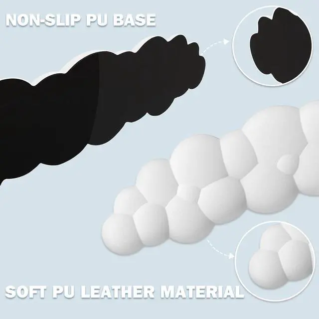 Ergonomic Cloud-Shaped DesignOur Lauspuck leather mouse pad and keyboard stand features a unique cloud-shaped design, its spacious curved shape provides more space and support for your wrists and hands, allowing you to control your mouse and keyboard more easily and increase your work efficiency. The soft memory foam pad will continuously support your wrist, relieving wrist and shoulder pain and stiffness, and effectively protecting your wrist from the painful syndrome of overuse.