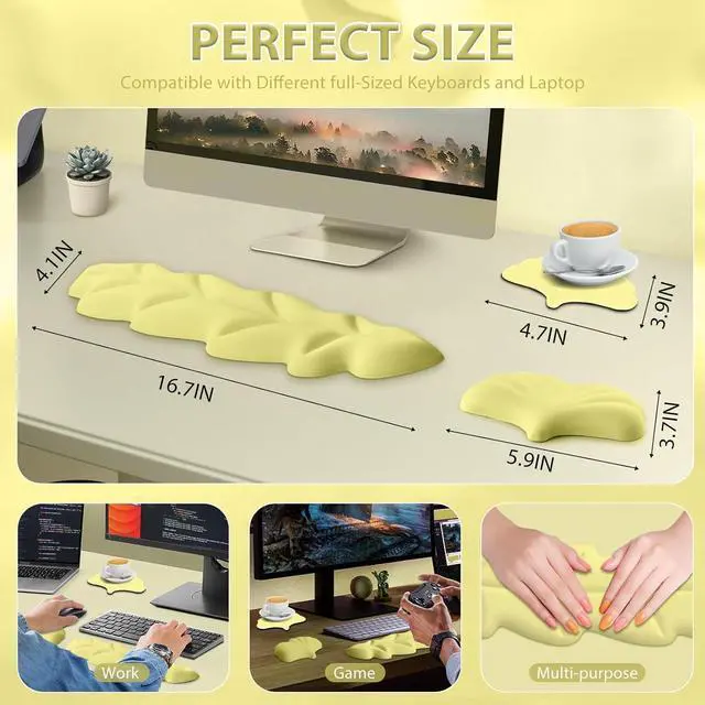 Ergonomic Leaf-Shaped DesignThe special Leaf-shaped design fits perfectly around your wrist, ensuring proper alignment of your wrist and reducing stress on your elbows and shoulders. thanks to its non-slip bottom. you can easily adjust its position to find the most comfortable angle for your wrists. This Upgrade stylish ergonomic keyboard rest is the perfect companion for work and study.