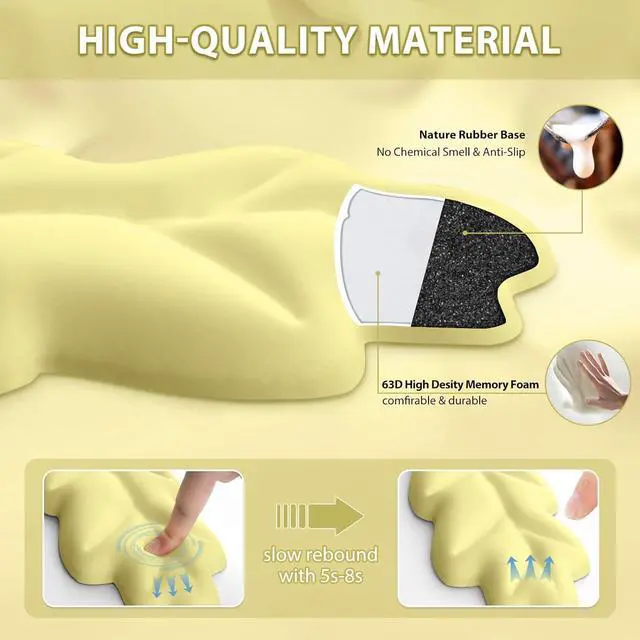 Durable Premium Memory FoamThe keyboard wrist rest is made of 63D high-density premium memory foam, which has the characteristics of super slow bounce and excellent support. Slow bounce time up to 5-8 seconds, and it can bear the wrist pressure evenly, which is extremely comfortable and durable.