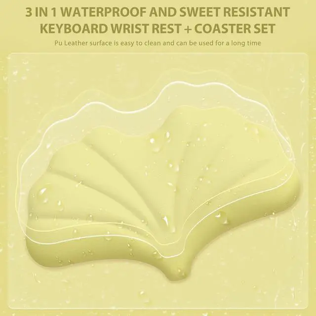 Natural Rubber Non-Slip Base The PU anti-slip base of the keyboard and mouse wrist rest provides a heavy grip that firmly holds the keyboard wrist rest in place, effectively preventing the keyboard wrist rest pad from sliding or moving unwanted. The double sticky and pressed hand provides a flat and smooth edge that will not roll up or crack. This improves typing efficiency. The Leaf shape coaster features a rubberised, non-slip base to prevent water from getting wet on the desk.