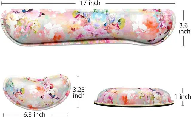 Enlarge Thicken Size 2-in-1 wrist rest set to provide double delighted experiences and save your time in purchase them separately. 17* 3.6 *1 inch keyboard wrist rest pad and 6.3 * 3.25 *1 inch mouse wrist pad offers more support to your wrist, Wrist rest works perfectly with most laptop computer keyboards &mice and save space for small desk.