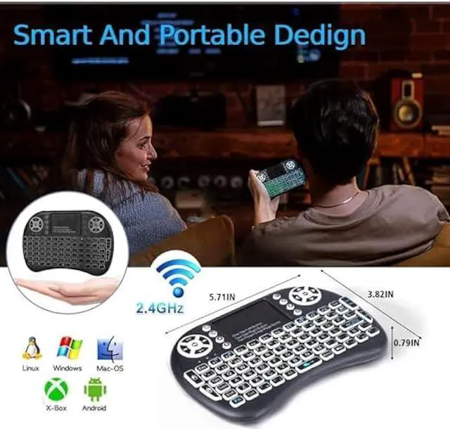 Humanized Handheld DesignPortable, Small and mini, perfect size with multi functions for you to grap and hold it with one hand or two hands on sofa or anywhere you want with anytime, this keyboard is compatible with many systems, like PC/ Tablets/ Windows/ Mac/ TV/ Xbox/ PS3/ Raspberry Pi ect. (Note: when used with Fire TV 4K and Fire Stick, you need to prepare a Micro usb host OTG cable).