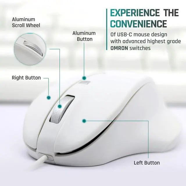 PLUG AND PLAY: Unlike wireless models, this wired computer mouse eliminates the need for any additional driver installations, offering a hassle-free, user-friendly experience. Simply connect it to a USB-C port using the provided wire, and you're good to go.