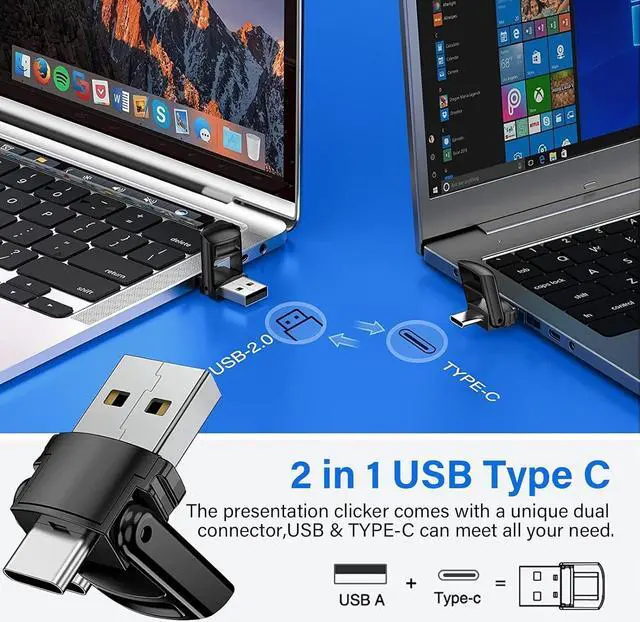 UNIVERSAL COMPATIBILITY LAPTOP CLICKER: USB Type C powerpoint clicker with red pointer. This computer clicker for presentations supports these office software: PowerPoint Keynote Prezi Word EXCLE ACD