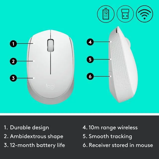 Easy Navigation: Thanks to controlled line-by-line scrolling and optical tracking, M170 Logi tech Mouse has smooth and accurate cursor control on almost any surface