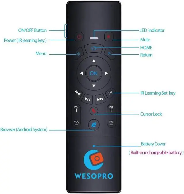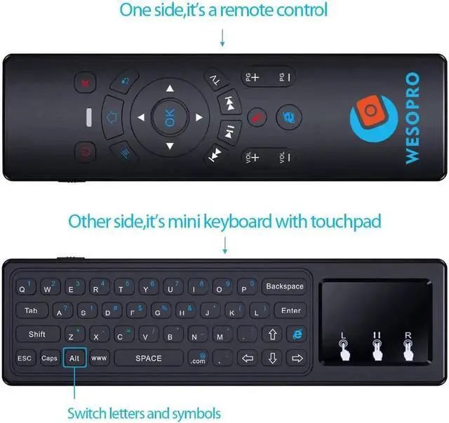 • Aomoproing WESOPRO Latest T6 Air mouse with Wireless Keyboard & touchpad Remote Control for Smart TV Android TV Box mini PC HTPC Projector