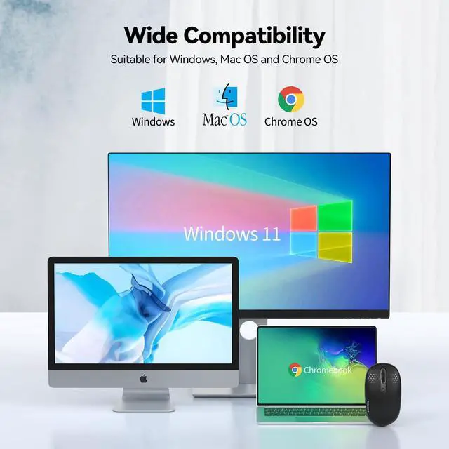 Featuring the size of 3.94*2.28*1.52 inch, the wireless mouse is portable enough for you to pack up in your school bag, business bag or even in your pocket.