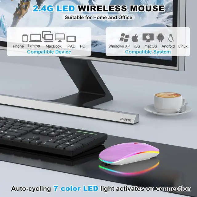 - [Universal Compatibility & Portable Size]Light-Up mouse compatible with Windows, macOS, Chrome OS, Linux, Android, iOS, iPadOS and moreworks with laptops, desktops, tablets, iPads, MacBooks, iPhones, etc. Compact and lightweight (4.5 x 2.36 x 0.8 in), making it easy to carry in your bag for travel or on-the-go use.