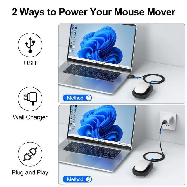 Mouse Jiggler Undetectable with Timer, Mouse Mover Wiggler Random Movement, Mechanaical physical Mouser Shaker Keep PC/Laptop Awake