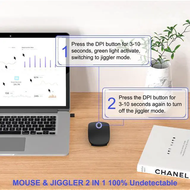 Azmall Wireless Bluetooth Mouse with Dual-Mode connectivityBluetooth 5.2, Bluetooth 3.0, and 2.4GHz wireless via USB-A/C receiverensuring fast, stable connections to almost any device, Works with MacBook Air/Pro, Apple,Windows laptops, and desktops. Its silent click design minimizes noise, creating a distraction-free environment wherever you work. Wireless Mouse built-in rechargeable lithium-polymer battery, it charges fully in just 2-4 hours and provides 3-4 weeks of usage on a single charge, with a standby time of up to 90 days. Its slim, quiet design ensures a smooth, distraction-free experience. Besides, Jiggler Mouse with the Mouse Shaker function keeps your device active by simulating movement, perfect for multitasking on the travel home or other situations.