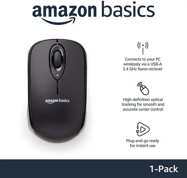 Smooth, precise and affordable wireless optical 3-button mouse with USB nano receiver for laptop, desktop and netbook PCs