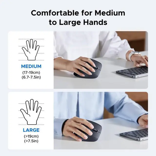 Ergonomic Vertical Design for Natural Comfort: Designed with a natural vertical handshake position that reduces wrist rotation and muscle strain. A great choice for users with larger hands or anyone who spends long hours on the computer