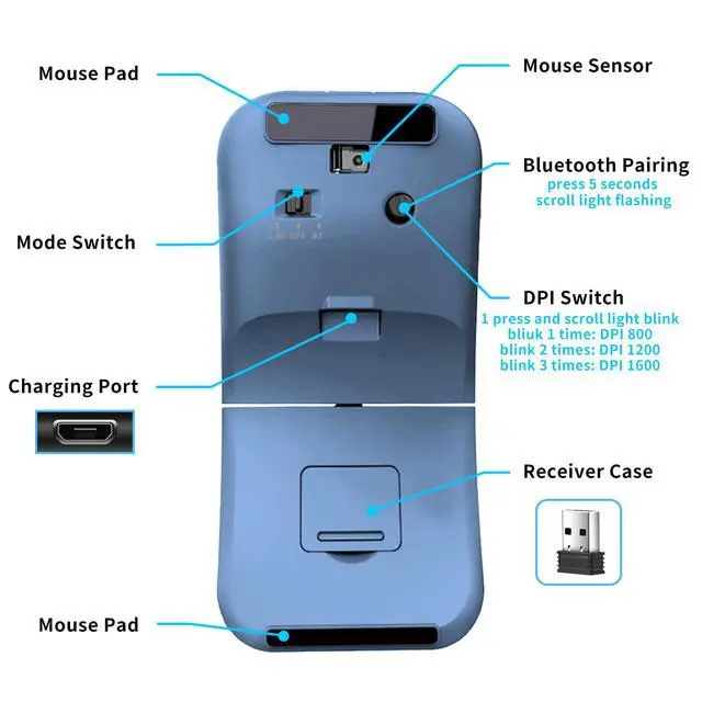 DPI can switch between 800-1200-1600 by lightly pressing the 'DPI/Pairing' button at the bottom of the mouse.