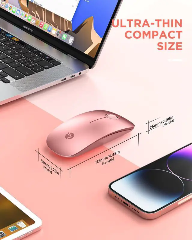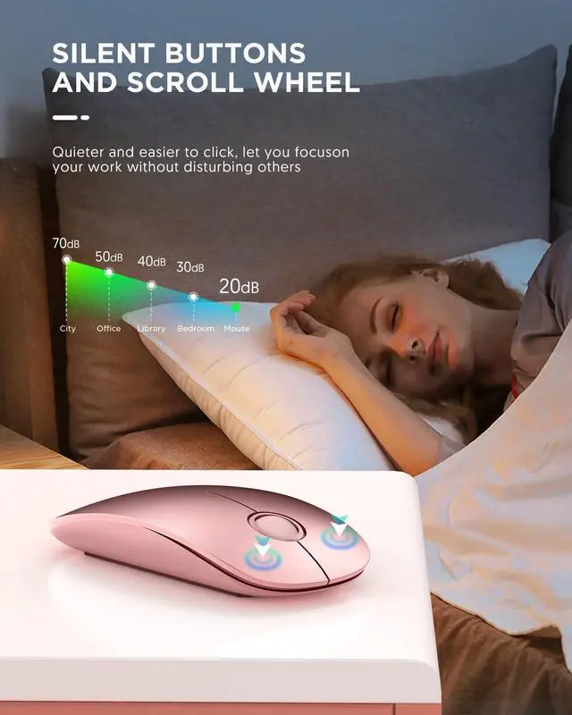 The dual-mode connection allows you to easily switch between Bluetooth and 2.4G wireless mode, depending on your preference and device compatibility. the 2.4G mode offers plug-and-play functionality with the USB receiver, providing you with an instant and hassle-free connection. In Bluetooth mode, just press and hold the mode button for three seconds, and the blue indicator light will rapidly flash, indicating that the mouse is in pairing mode. and ready to connect to a new device.