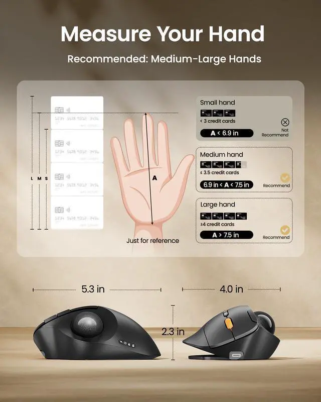 - The trackball mouse offers a distinctly different feel compared to traditional mice and may require some time to get used to. For first-time users, we recommend starting at 200/400 DPI and adjusting only once you feel comfortable.