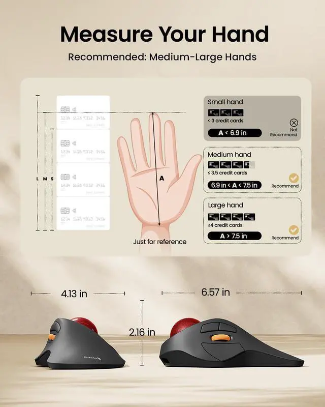 This ergonomic mouse supports dual BT 5.0 and 2.4G USB connectivity modes for simultaneous connection of up to 3 different devices