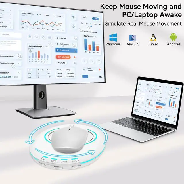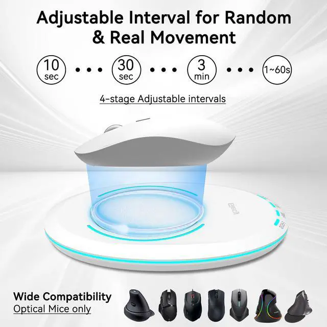 Adjustable Interval Timer: Equipped with an adjustable interval timer, Giecy mouse mover allows you to set the frequency and duration of the mouse movements according to your needs. Prevent your computer from entering sleep mode and maintain your workflow without interruptions.