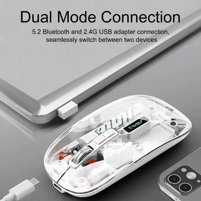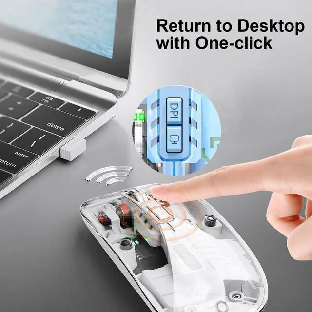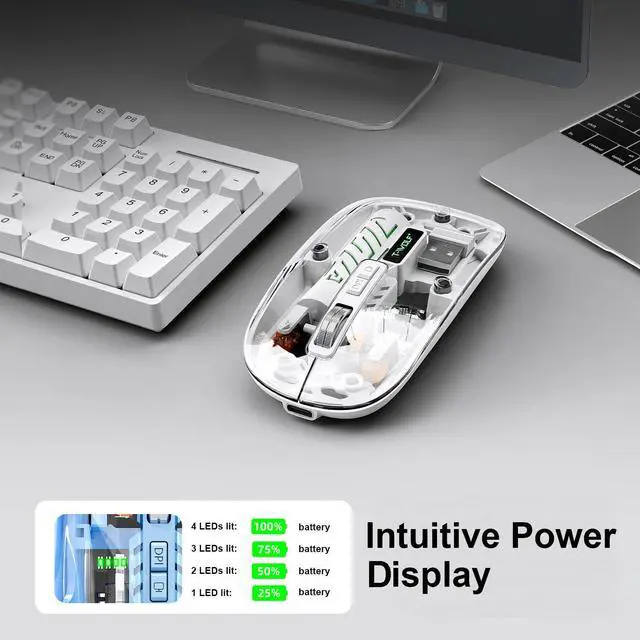 Always know your mouse power status. The built-in LED indicator shows remaining charge at a glance.