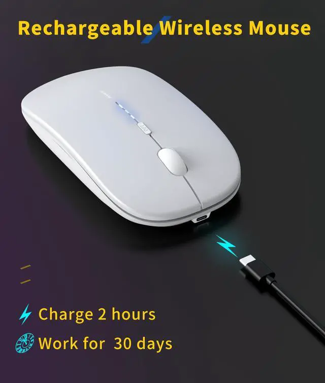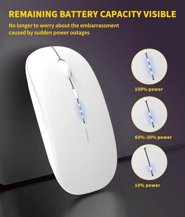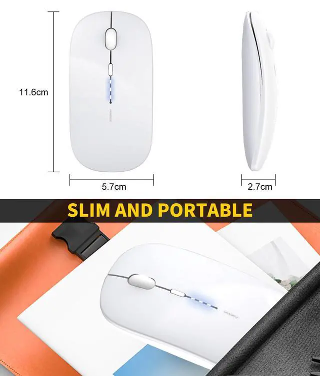 ![Alt view image 5 of 6 - Wireless Mouse Rechargeable,[Battery Level Visible] 2.4G Silent Ultra Slim Portable Mouse,4 Adjustable DPI 800/1000/1200/1600 Quiet Click Cordless Mouse for Laptop PC Computer-White](https://c1.neweggimages.com/productimage/nb640/C57ZD2603120SIKW680.jpg)